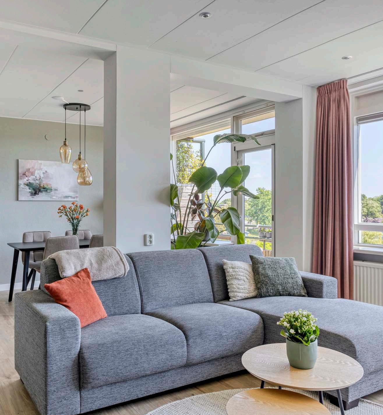 Toen ik hier eind 2022 kwam wonen, heb ik de woon- en eetkamer bij elkaar betrokken, een nieuwe vloer laten leggen en alles opgefrist, waardoor het hier binnen prettig en ruimtelijk aanvoelt. Zowel dit appartementsgebouw als de directe omgeving zijn rustig en aangenaam. Ook zijn alle voorzieningen dichtbij: binnen een paar minuten loop ik naar de supermarkt of fiets ik naar het station of het centrum. Ik woon hier nog steeds met veel plezier, maar ik ga verhuizen omdat ik samen met mijn vriend een huis heb gekocht.