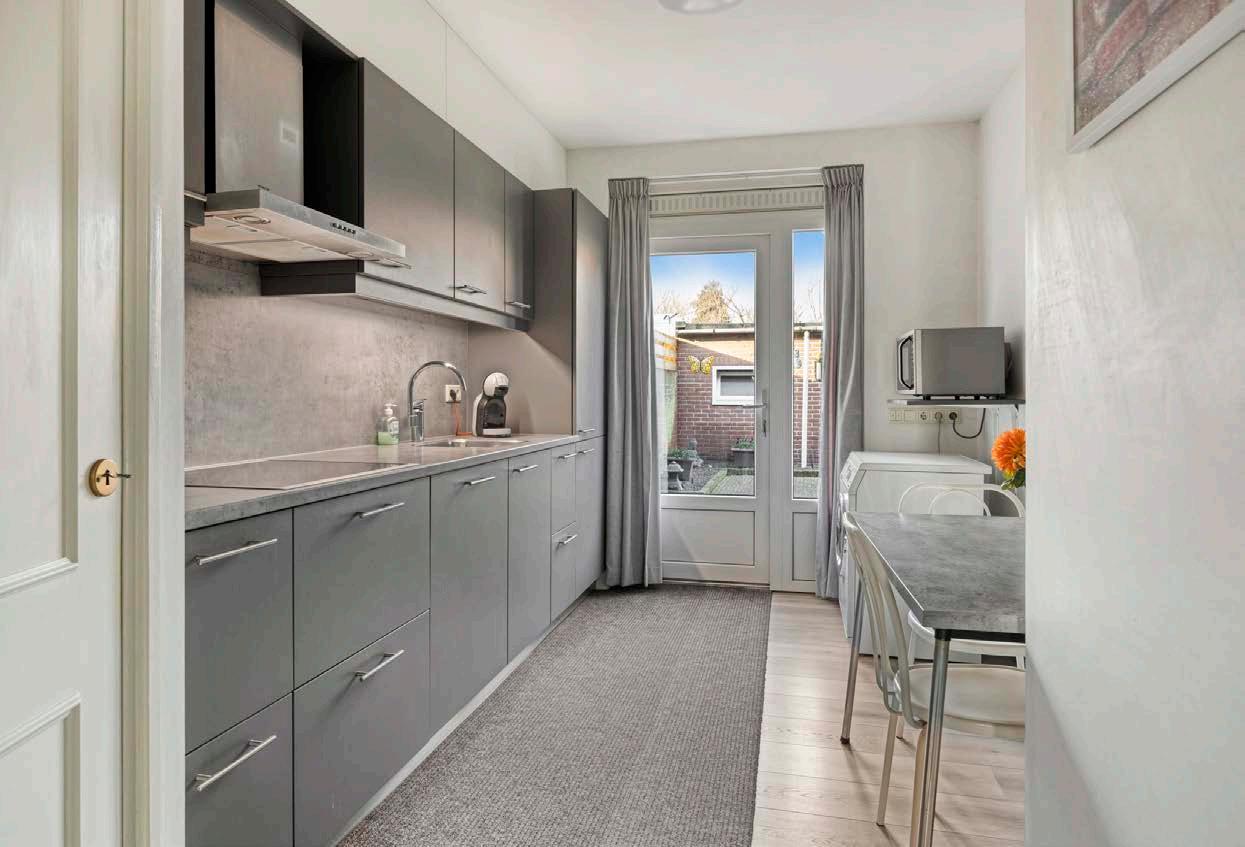 De keuken, geplaatst in 2019, is modern ingericht en slim ingedeeld. Met de inductiekookplaat, vaatwasser, koelkast en vriezer beschik je over alles wat je nodig hebt om gemakkelijk de lekkerste maaltijden te bereiden. Er is genoeg werkruimte en de keuken sluit naadloos aan op de stijl van de rest van het huis.