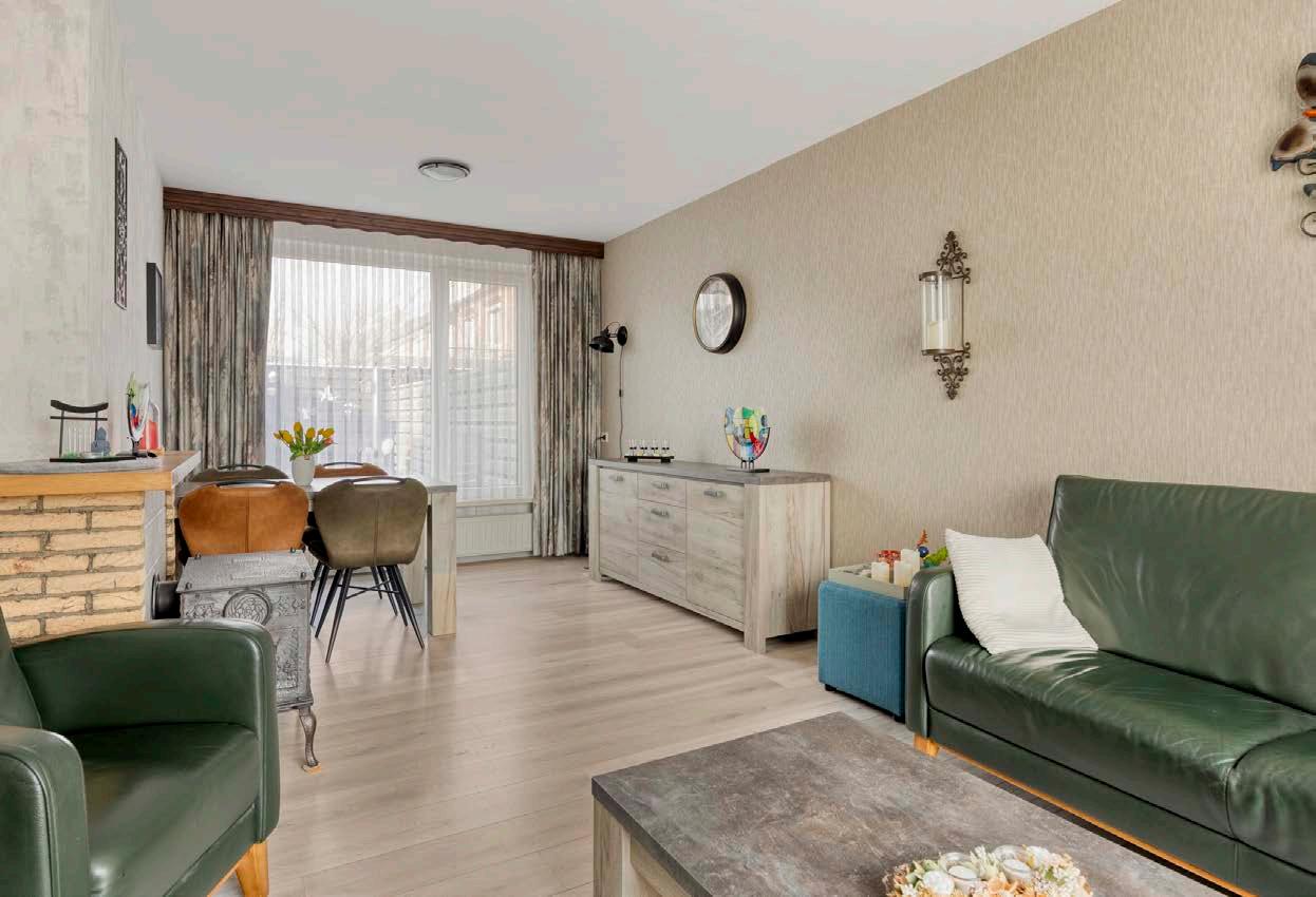 De woonkamer is netjes afgewerkt en biedt dankzij de grote ramen veel daglicht. Hier kun je eenvoudig een gezellige zithoek en eethoek creëren. Vanuit de woonkamer kijk je uit op de achtertuin – een fijne buitenruimte gelegen op het westen.