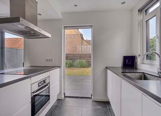 De woonkamer is heerlijk licht dankzij de grote ramen en de schuifpui die een perfecte verbinding biedt met buiten. De vloerverwarming zorgt daarbij voor warme, comfortabele winters en een strakke uitstraling zonder zichtbare radiatoren. Hier geniet je elke dag van een ontspannen thuisgevoel.