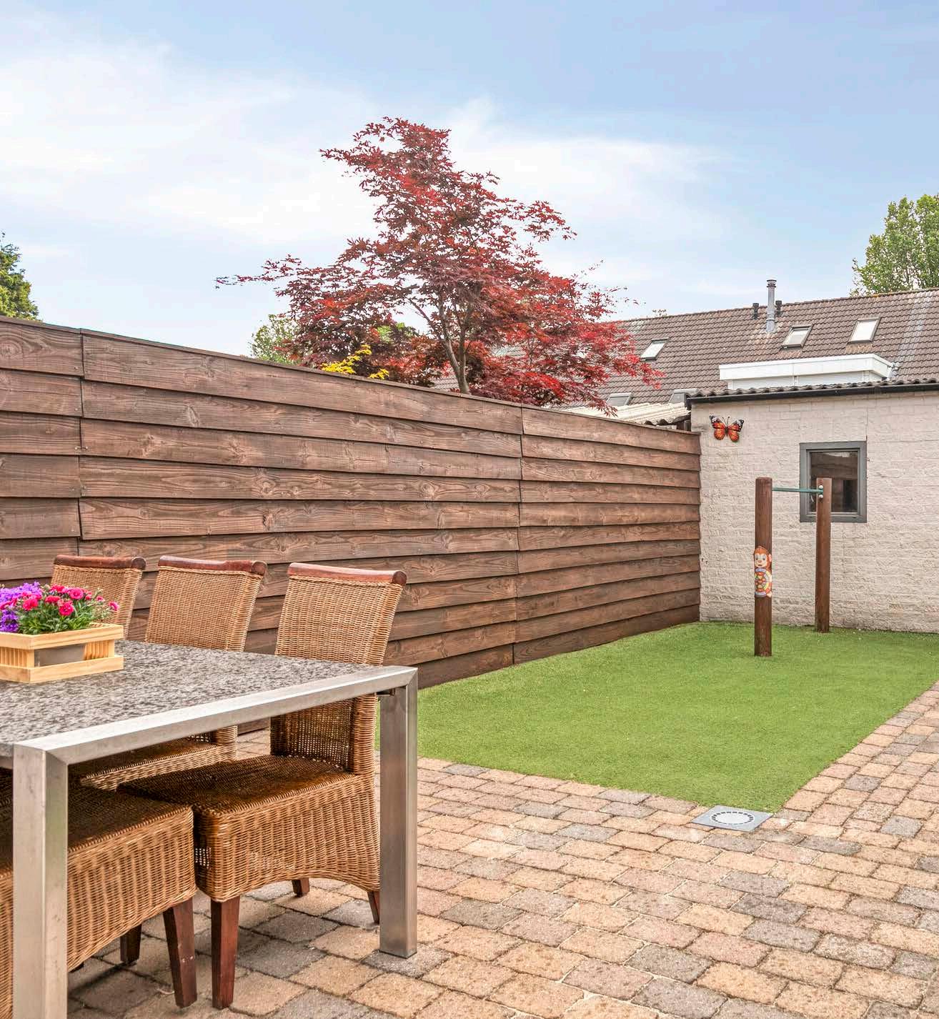 De tuin ligt op het zuidoosten, wat betekent dat je de hele dag van de zon kunt genieten. Begin je ochtend buiten in het zonnetje met een kop koffie, of organiseer op een warme zomeravond een barbecue voor vrienden en familie. De tuin heeft genoeg ruimte voor een gezellige zithoek en wat groen. Achterin de tuin staat een handige berging voor fietsen, tuinspullen of speelgoed.