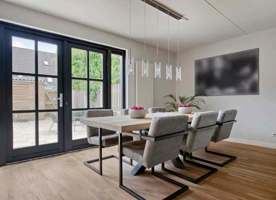 De woonkamer voelt meteen als je nieuwe thuis. Met zijn royale 37 m² en brede aanbouw aan de achterzijde biedt deze ruimte volop mogelijkheden voor een fijne indeling. De grote tuindeuren laten een prachtige hoeveelheid daglicht binnenvallen en vormen de perfecte overgang naar de zonnige achtertuin. Hier wordt binnen en buiten moeiteloos met elkaar verbonden.