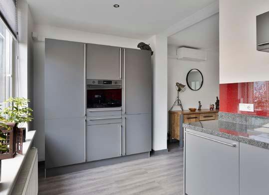 De keuken is modern, strak en van alle gemakken voorzien. Met hoogwaardige inbouwapparatuur en een slimme indeling kook je hier gemakkelijk een maaltijd zonder in ruimte te kort te schieten. Grenzen je kookkunsten nog niet aan sterrenniveau? Dan inspireert deze keuken je vast meteen!
