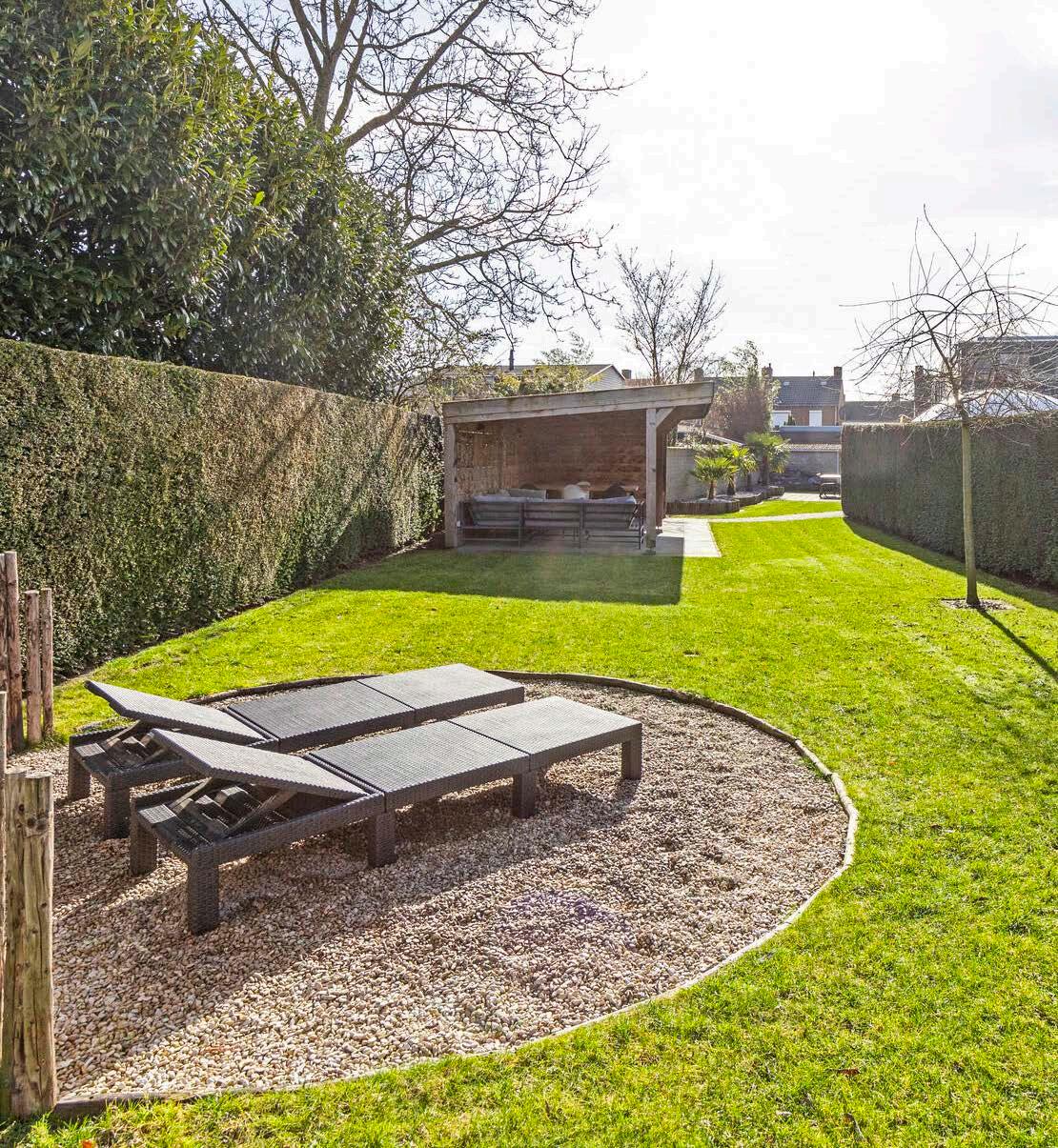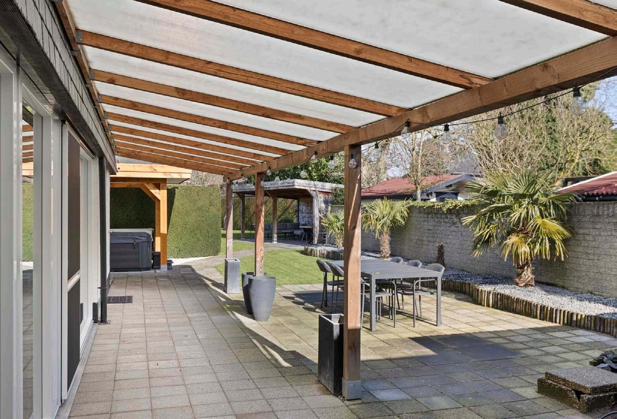 De tuin is een buitenparadijs dat volop privacy biedt. Met meerdere overdekte terrassen is er altijd een plekje om te genieten van de rust en natuur, ongeacht het weer. Deze uitgestrekte groene ruimte nodigt uit tot ontspanning en biedt eindeloze mogelijkheden voor buitenentertainment. Of je nu kiest voor een zonnige middag met een goed boek, een gezellige barbecue met vrienden, of sterrenkijken op een heldere avond, deze tuin is jouw persoonlijke toevluchtsoord