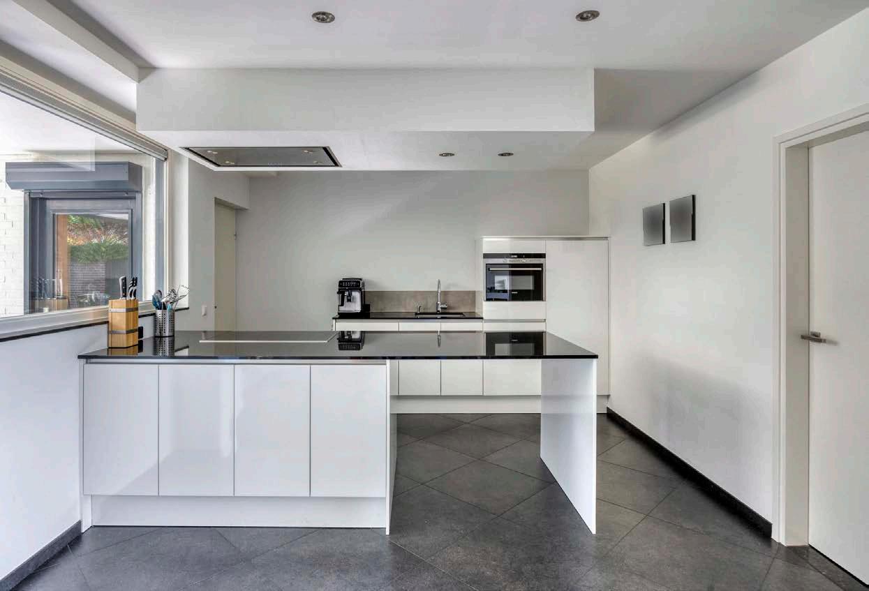 Een absolute eyecatcher in deze woning is de moderne open keuken. Denk aan gladde afwerkingen, hoogwaardige apparatuur en een slimme indeling. Een keuken die niet alleen praktisch is, maar ook uitnodigt tot het proberen van dat nieuwe recept, het bereiden van uitgebreide diners of gewoon het samen drinken van een kop koffie. Hier draait alles om samenzijn.