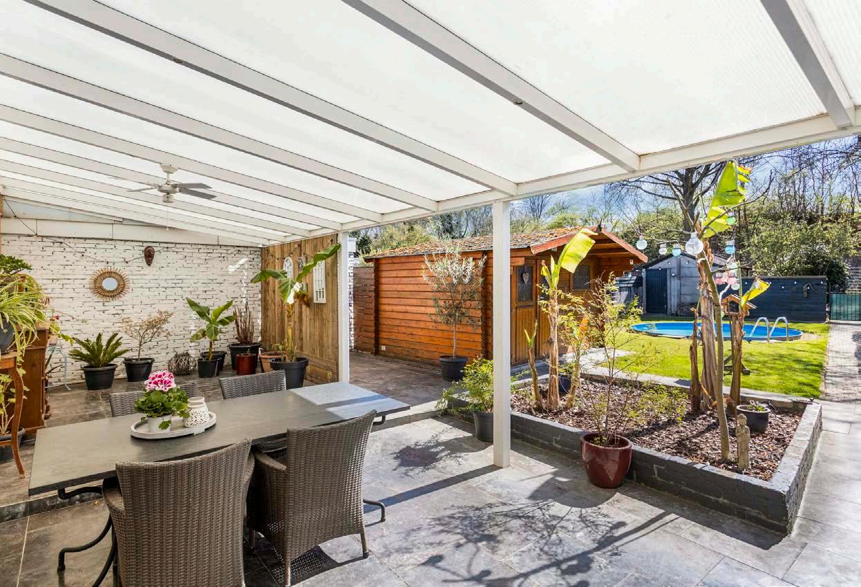 Buiten deze prachtige woning wacht een grote tuin op je, die het ideale decor biedt voor zomerse feesten en ontspanning. De tuin is een waar paradijs: zonovergoten, met voldoende ruimte voor een speelse indeling en een fantastisch zwembad waar je de hele zomer in kunt plonsen. Dit is de perfecte plek voor de kinderen om te spelen en vrienden uit te nodigen voor een barbecue of een tuinfeest. Geniet van lange zomeravonden op het terras met een goed boek in de hand of organiseer een sportieve middag met vrienden. De mogelijkheden zijn eindeloos en de sfeer is altijd gezellig. Dit is de tuin waar je je zorgen kunt vergeten en volop kunt genieten van buitenleven!
