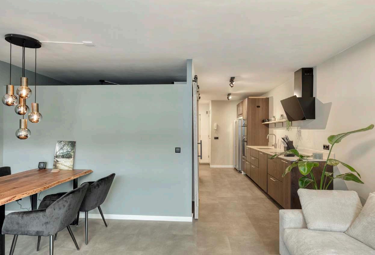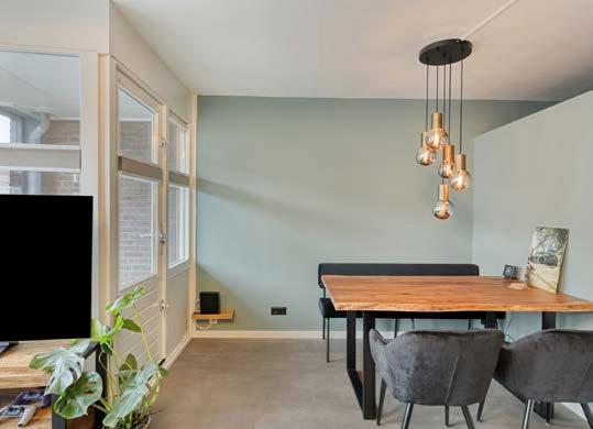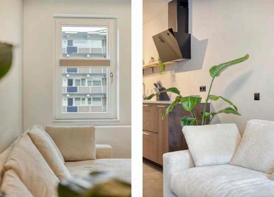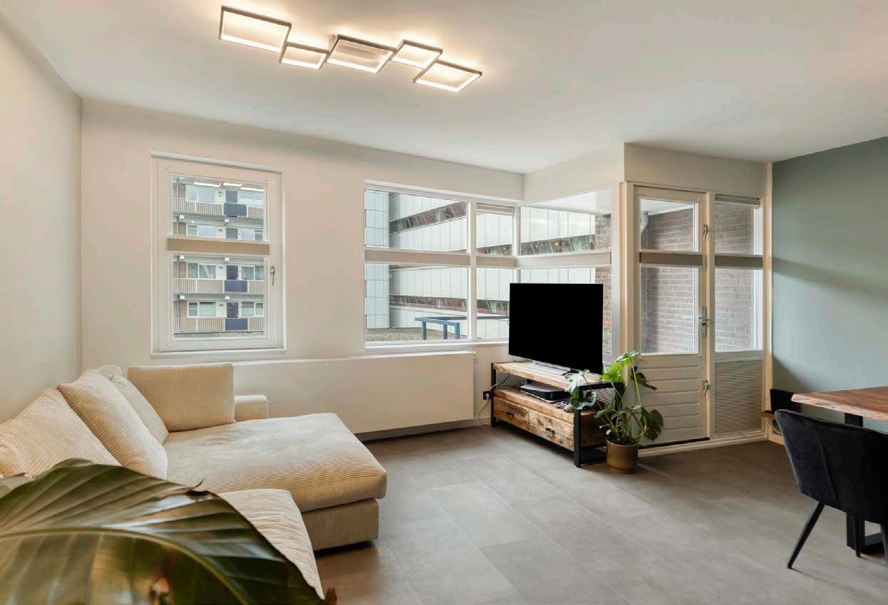 De woonkamer is een heerlijke plek om tot rust te komen en heeft dankzij de verplaatste keuken een nog ruimterijkere indeling. Vanuit de woonkamer loop je zo door naar een van de highlights van het appartement: het zonnige balkon. Hier word je verwelkomd door het zachte licht van de ochtenden namiddagszon, dankzij de ligging op het zuidoosten.