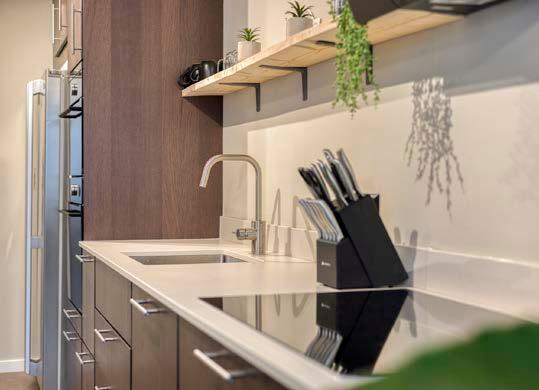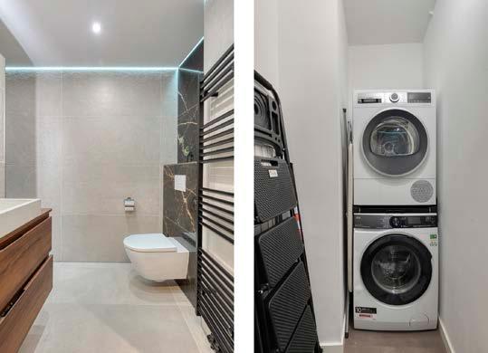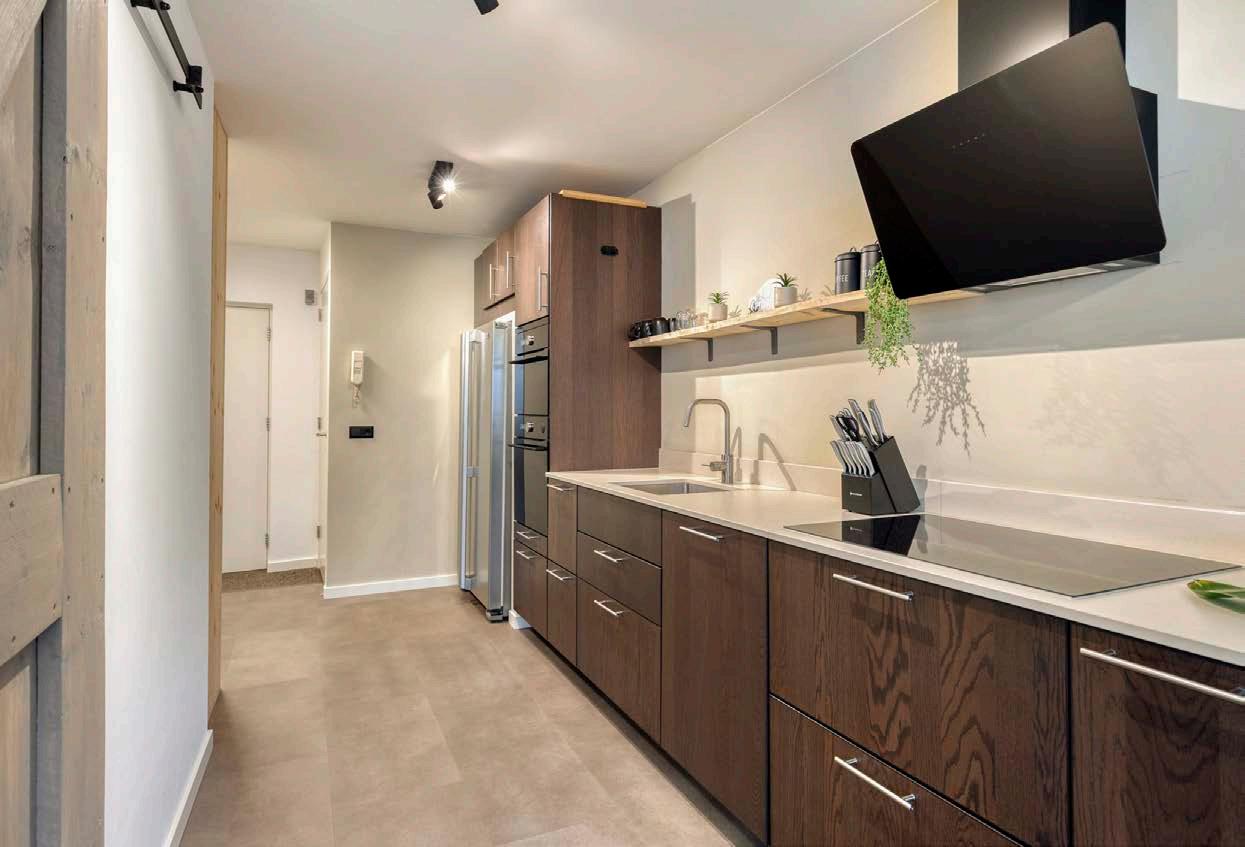 De luxe open keuken is een eyecatcher op zich: strak design met hoogwaardige materialen en slimme opbergruimte. Of je nu dol bent op koken of gewoon zin hebt in een snelle maaltijd, deze keuken maakt het plezierig en praktisch. Naast de keuken is een handige berging aanwezig, hier is ook de aansluiting voor de wasmachine.