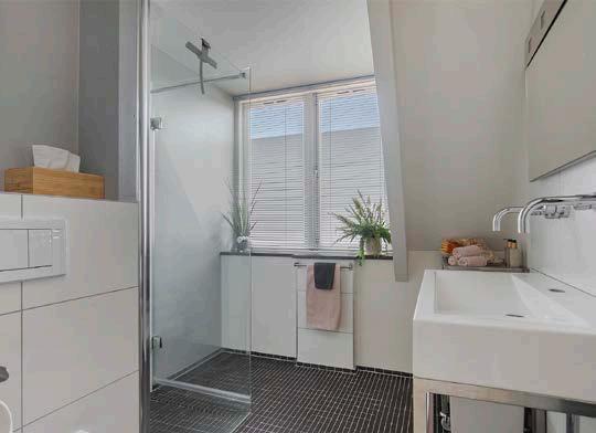 De badkamer heeft een verzorgde en moderne uitstraling en is van alle gemakken voorzien. Zo is er een dubbele wastafel aanwezig, een toilet en een ruime inloopdouche. Met deze voorzieningen is de badkamer een heerlijke plek om te ontspannen.