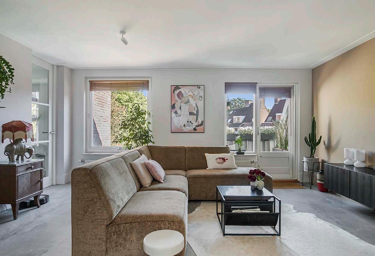 De vloer en de wanden zorgen voor een strakke en nette afwerking. Met meerdere ramen stroomt het daglicht overvloedig naar binnen. Daarnaast biedt de woonkamer toegang tot het balkon.