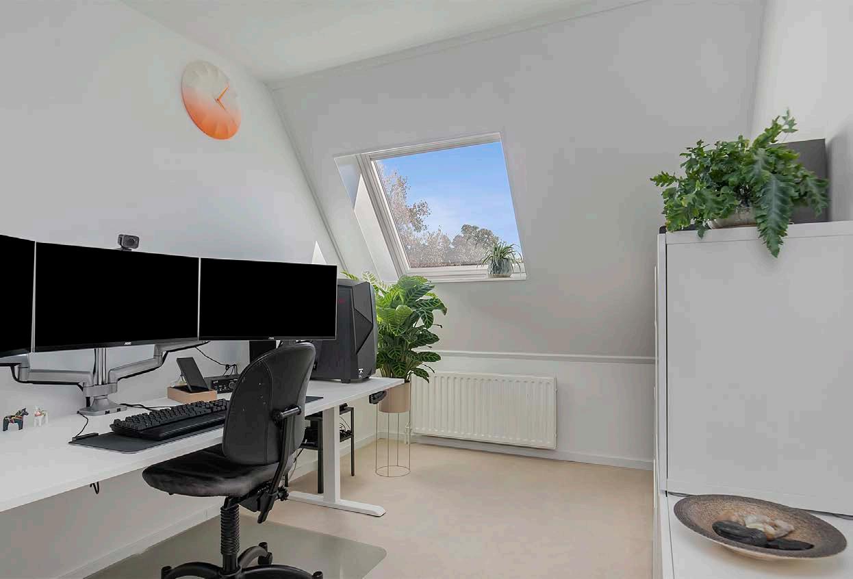 Op de tweede verdieping bevindt zich nog een ruime slaapkamer. Deze slaapkamer is afgewerkt met zachte vloerbedekking en behang. Hierdoor heeft de kamer een warme en gezellige uitstraling. Daarnaast is er op deze verdieping ook een wasmachineaansluiting aanwezig.