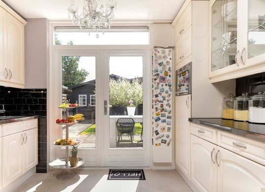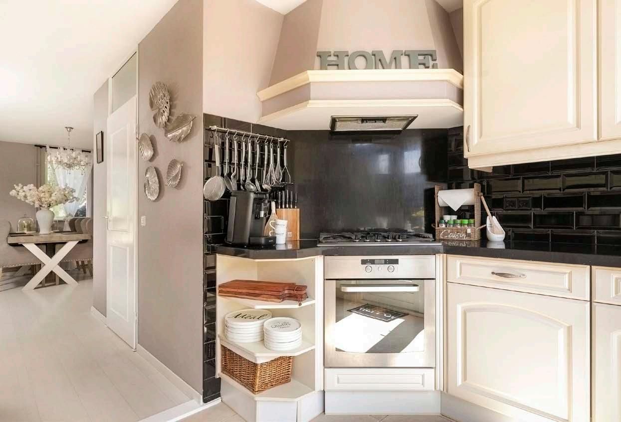 De open keuken, het hart van het huis, is voorzien van alle moderne gemakken en heeft openslaande deuren naar de tuin. Stel je voor hoe je op een zonnige ochtend de deuren opent en de frisse lucht naar binnen laat stromen terwijl je geniet van een kop koffie.
