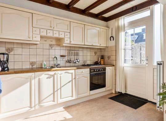 De open keuken is enigszins gedateerd, maar biedt volop mogelijkheden om deze naar eigen inzicht te moderniseren