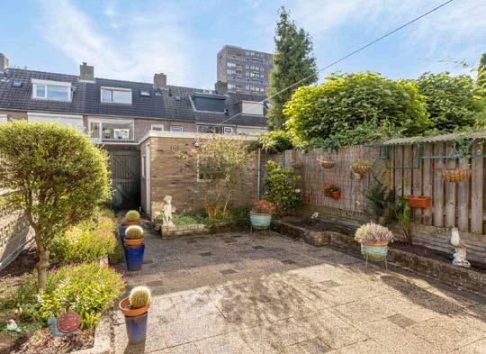 De achtertuin ligt op het oosten en is perfect om ‘s ochtends te genieten van de zon. De praktische stenen berging biedt voldoende ruimte voor fietsen, tuingereedschap en andere spullen.