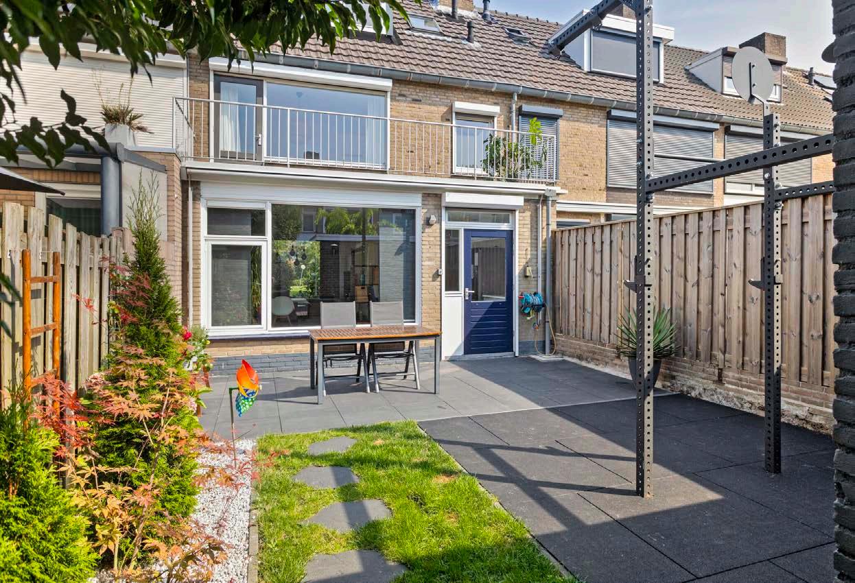 De zonnige tuin is een heerlijke plek om te ontspannen en te genieten van het buitenleven. Of het nu gaat om een kopje koffie in de ochtendzon, een gezellige barbecue met vrienden of om heerlijk te sporten.