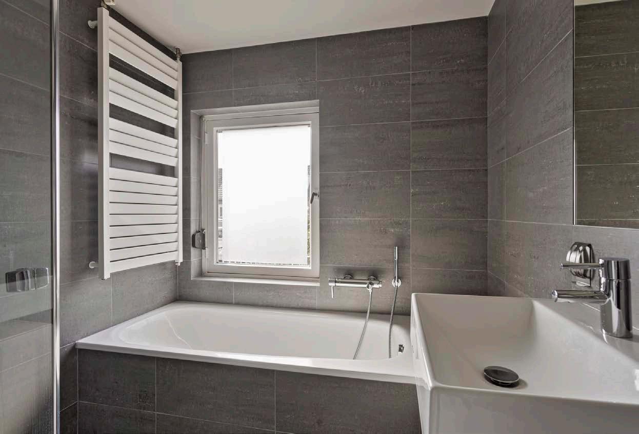 De badkamer op deze verdieping is een oase van rust en luxe. Hier vind je een ligbad om na een lange dag in te ontspannen, een aparte douche en een stijlvol wastafelmeubel. Voor extra gemak is er een separaat toilet aanwezig met handenwasgelegenheid.
