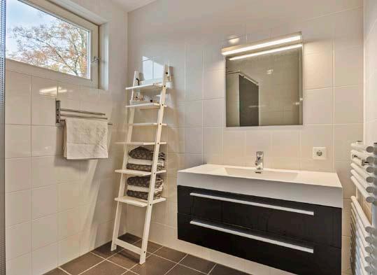 De moderne badkamer op de eerste verdieping is een oase van rust en comfort. Uitgerust met een stijlvolle inloopdouche, een closet en een badmeubel, biedt deze badkamer alles wat je nodig hebt voor je dagelijkse verzorging. De luxe afwerking en het gebruik van hoogwaardige materialen maken van deze badkamer een echte blikvanger.