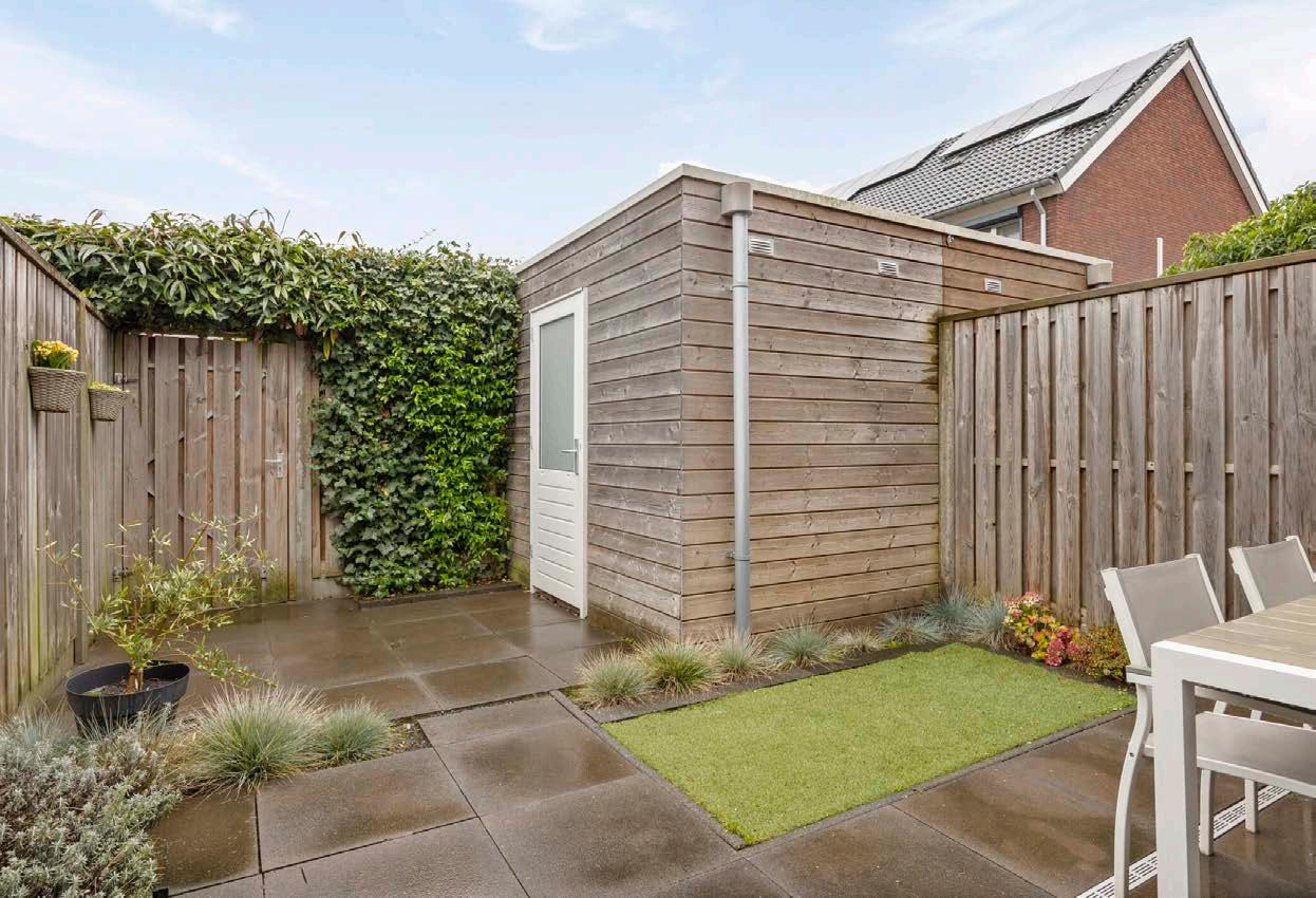 De zonnige achtertuin, gelegen op het zuiden, is de perfecte plek om te ontspannen en te genieten van buitenactiviteiten. Of je nu van tuinieren houdt, kinderen hebt die graag buiten spelen, of simpelweg wilt genieten van een goed boek onder de zon, deze tuin biedt het allemaal. De houten berging in de tuin zorgt voor extra opbergruimte voor fietsen en tuingereedschap.