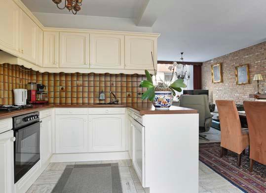 Aan de achterzijde vind je ook de lichte, ruime open keuken met bar en zicht op de woon-/eetkamer. De keuken is geplaatst in een U-opstelling en biedt voldoende werk- en opbergruimte. Uiteraard ben je voorzien van diverse apparatuur en vanuit de keuken heb je toegang tot de achtertuin.