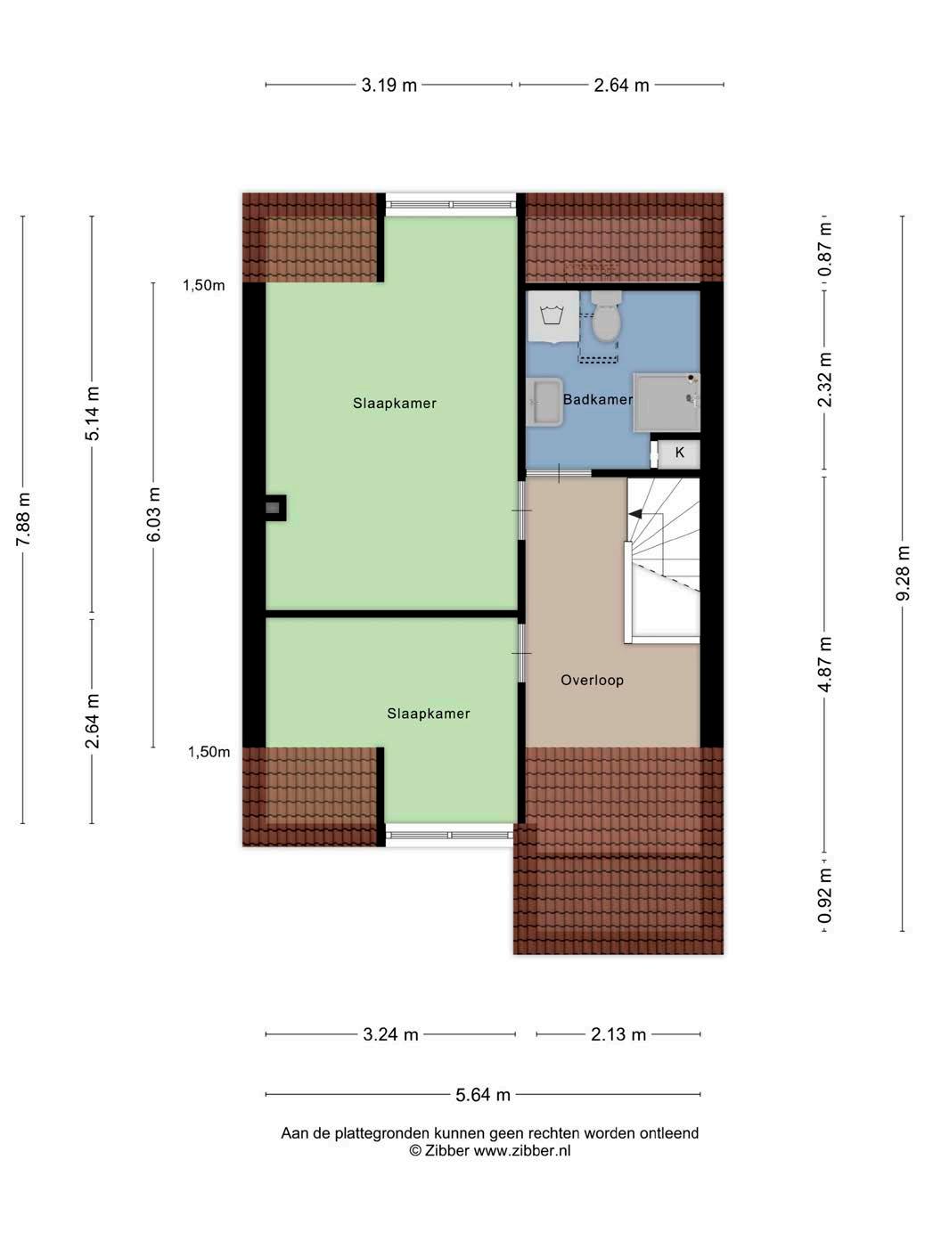 De slaapkamer aan de voorzijde is ruim en licht, terwijl de tweede slaapkamer aan de achterzijde zich leent voor rust en stilte. Een derde slaapkamer is eenvoudig te realiseren door de cv-opstelling te verplaatsen en een dakvenster of dakkapel te plaatsen.