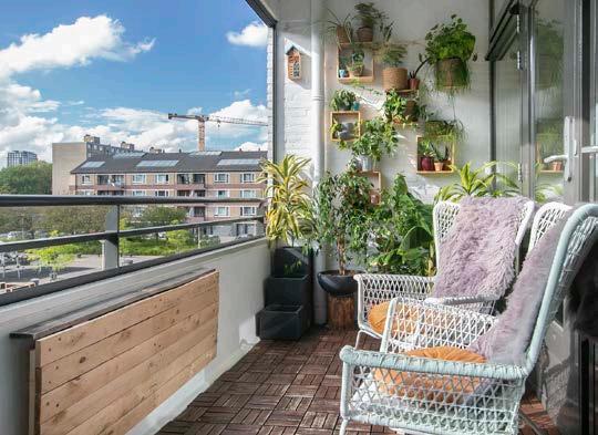 Op het balkon kun je heerlijk genieten van de buitenlucht, de middag-/avondzon en heb je de ruimte voor een heerlijke loungebank of stoeltjes. Door de schuiframen kun je bij fris weer de ramen dicht doen en bij mooi weer de ramen open schuiven en genieten van het zonnetje. Als je groene vingers hebt, dan kun je gebruikmaken van de gemeenschappelijke moestuin.