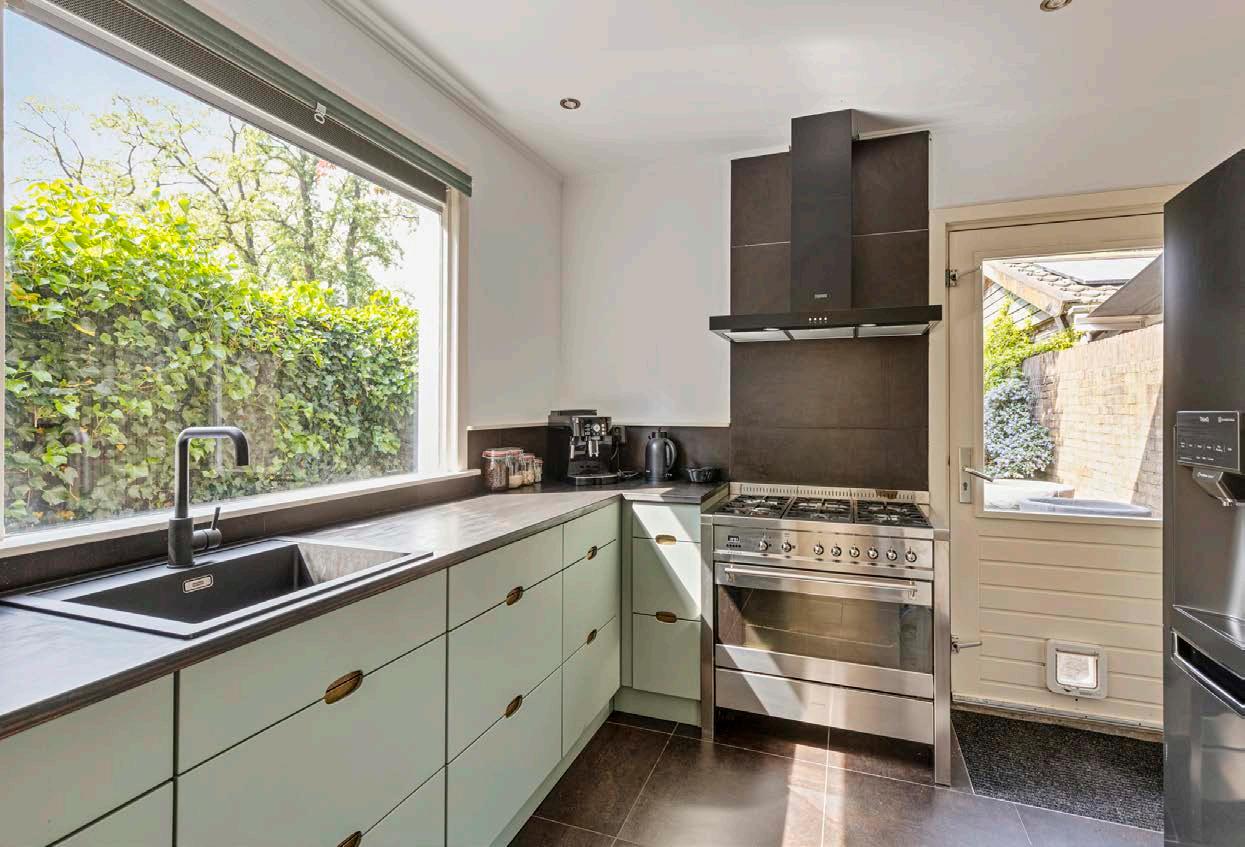 Deze keuken is recent geïnstalleerd en biedt een strak design dat past bij de uitstraling van het huis. Met voldoende werkruimte op het aanrecht en hoogwaardige inbouwapparatuur wordt koken een dagelijkse vreugde.