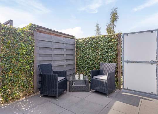 De tuin, gelegen op het zuidwesten, biedt zon in de middag en avond, perfect voor tuinliefhebbers en spelende kinderen.