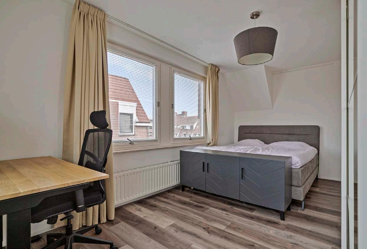 De grote slaapkamer biedt een comfortabele en rustige ruimte om tot rust te komen. Hier heb je alle ruimte voor een groot bed en een grote kledingkast. Het is de perfecte plek om je na een drukke dag terug te trekken en te genieten van een goede nachtrust. De ruimte is royaal genoeg om ook een werkplek te creëren.
