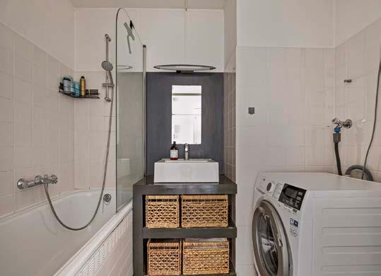 De badkamer is praktisch ingedeeld met een wastafelmeubel en een ruim ligbad, waarin je heerlijk kunt ontspannen. Bovendien beschik je over een aansluiting voor een wasmachine, wat het dagelijks leven een stuk praktischer maakt. Het separate toilet zorgt voor extra privacy en gemak.