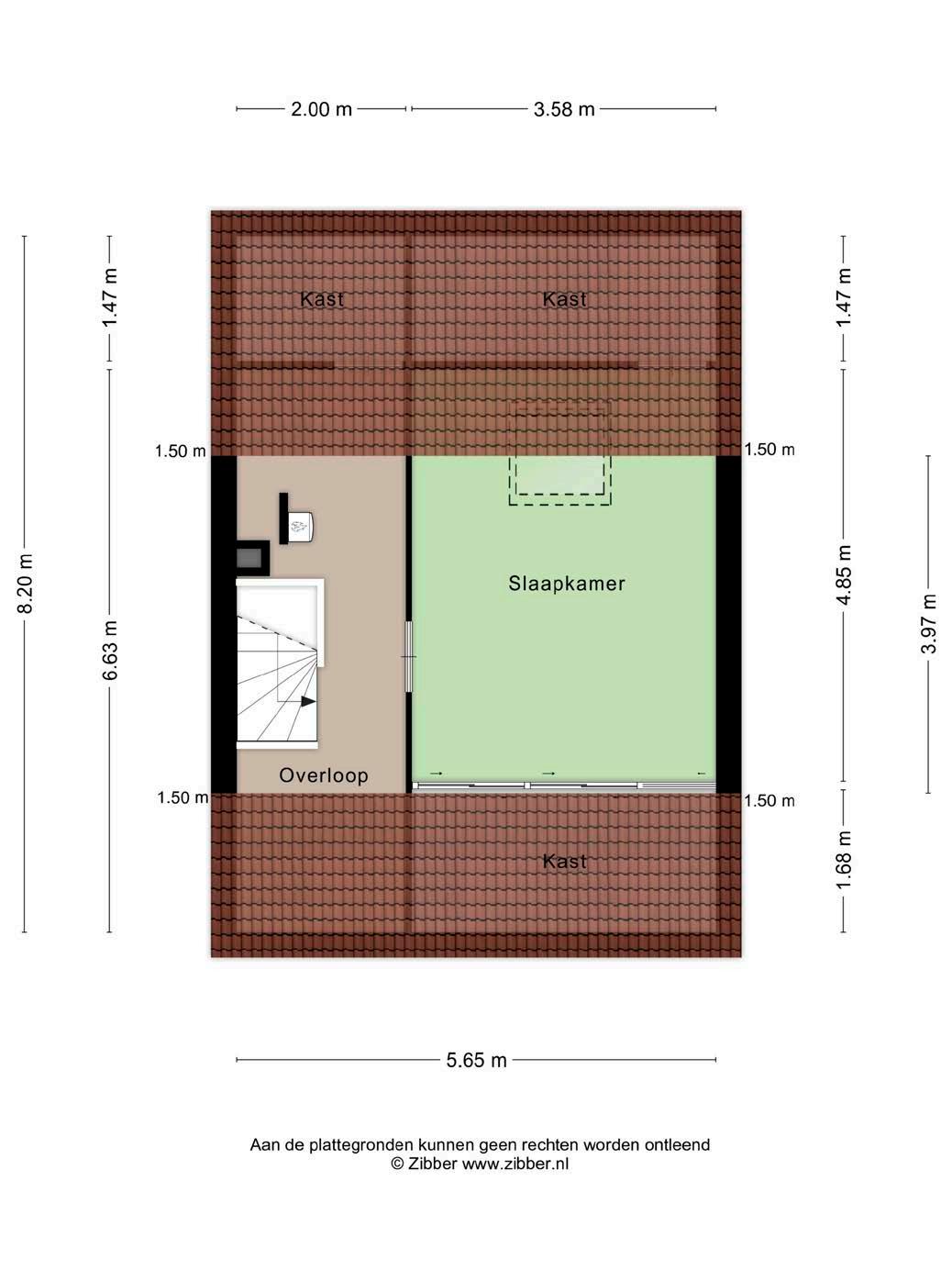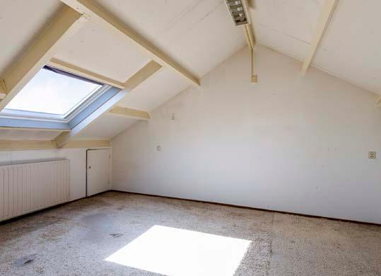 Via een vaste trap kom je op de tweede verdieping. Hier tref je een overloop met de CV opstelling en toegang tot de derde slaapkamer. Deze ruimte is voorzien van een dakraam en achter de knieschotten vind je veel bergruimte. De kamer dient nog geheel afgewerkt te worden in jouw stijl.