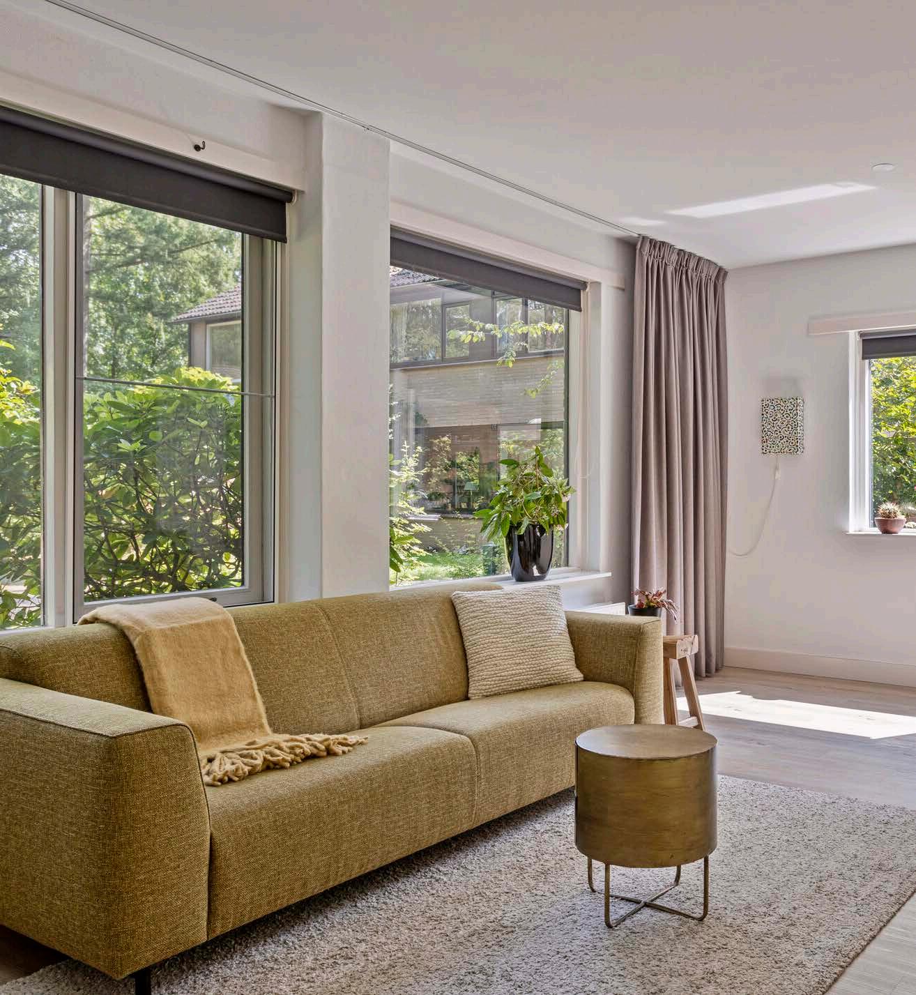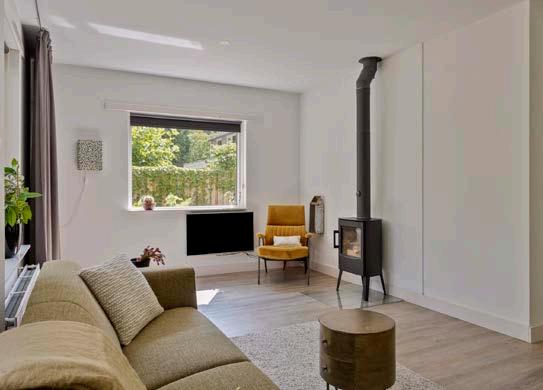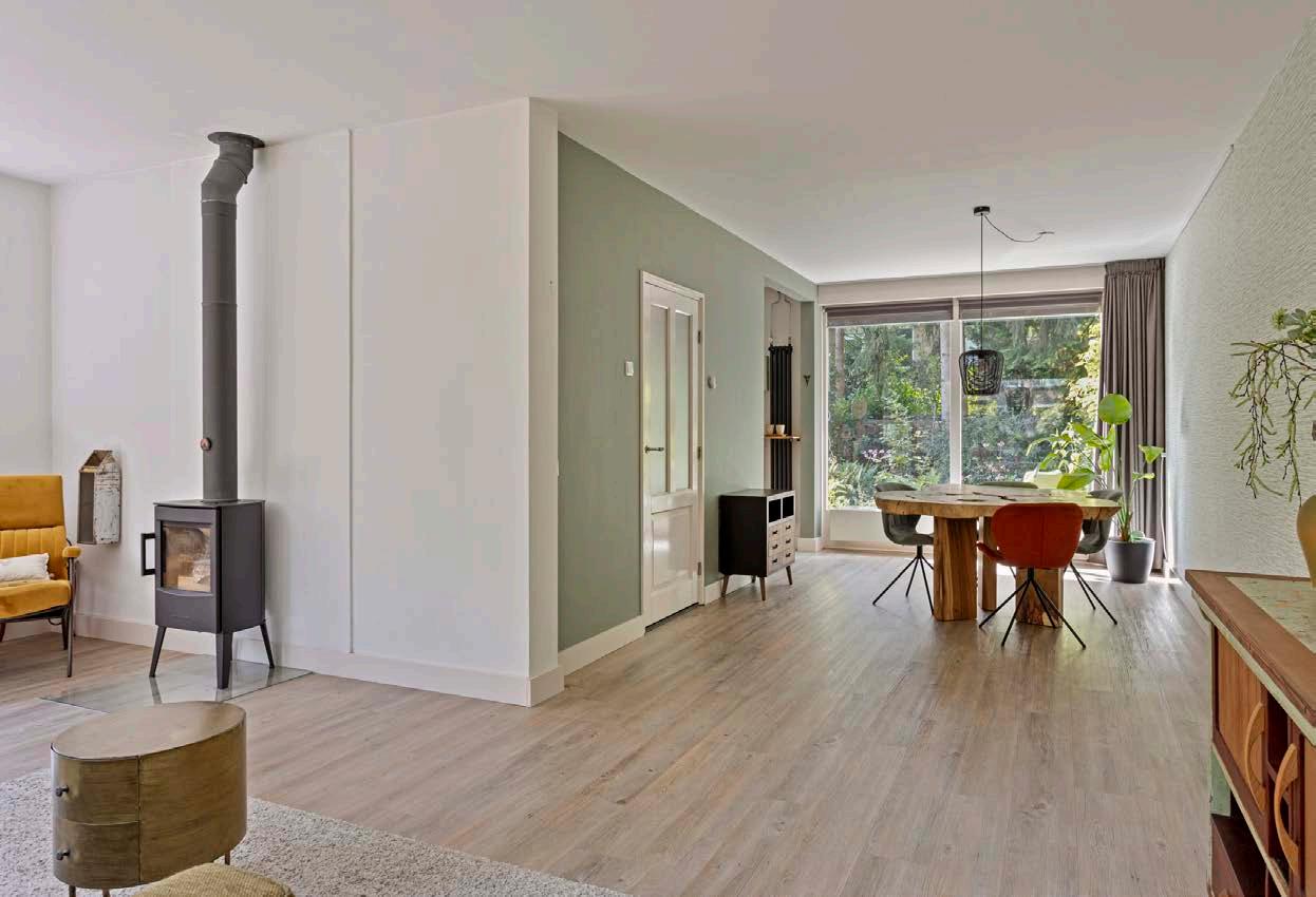 Bij binnenkomst valt meteen de lichte en ruime woonkamer op, met grote ramen die veel natuurlijk licht binnenlaten en een mooi uitzicht bieden op de groene omgeving. De woonkamer is een gezellige plek waar je samenkomt met het gezin of gasten ontvangt.