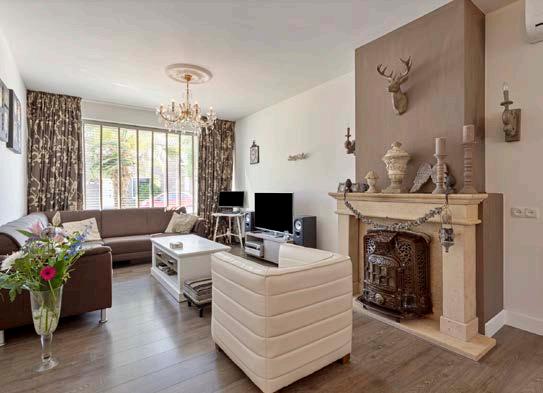 Dankzij de grote raampartijen valt er veel natuurlijk licht naar binnen en voelt de woonkamer heerlijk ruim en luchtig aan. Er is genoeg ruimte om een grote zit- en eethoek te creëren, zodat je helemaal tot rust kunt komen of juist gezellig kunt tafelen met vrienden en familie.