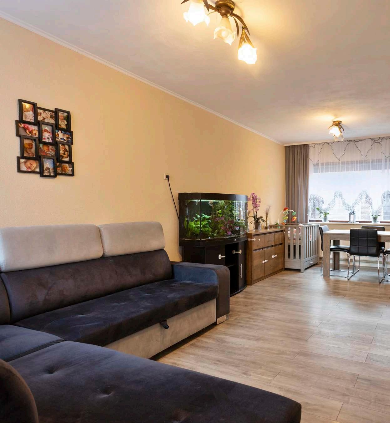 Je komt de woning binnen via de hal vanuit waar je toegang hebt tot de trapopgang naar boven en de woonkamer. De woonkamer is ruim opgezet en biedt daardoor plaats voor zowel een zit- als eethoek. Wat deze leefruimte extra comfortabel maakt is de aanwezige airco.