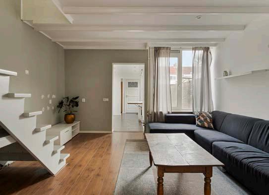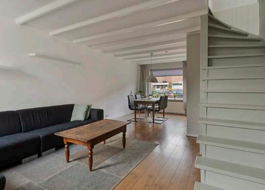 Stap binnen in de ruime woonkamer van bijna 30 m², waar de laminaatvloer en de stucwerk wandafwerking voor een moderne uitstraling zorgen. Hier is genoeg ruimte voor een comfortabele zithoek en een gezellige eethoek. Dankzij de trapopgang naar de 1e verdieping blijft de ruimte open en luchtig.