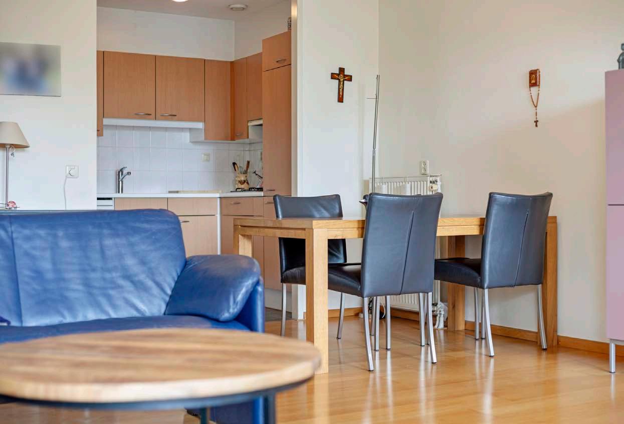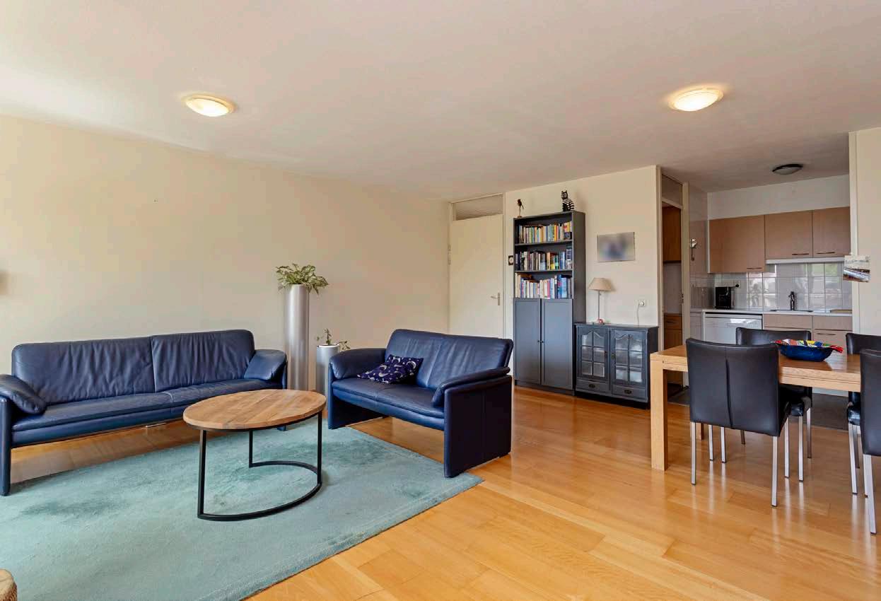 De woonkamer van dit appartement is praktisch ingedeeld, met een half open keuken en grote ramen die zorgen voor veel natuurlijk licht. Vanuit de woonkamer stap je zo het balkon op, waar je kunt genieten van frisse lucht en een gezellig uitzicht over de woonomgeving.
