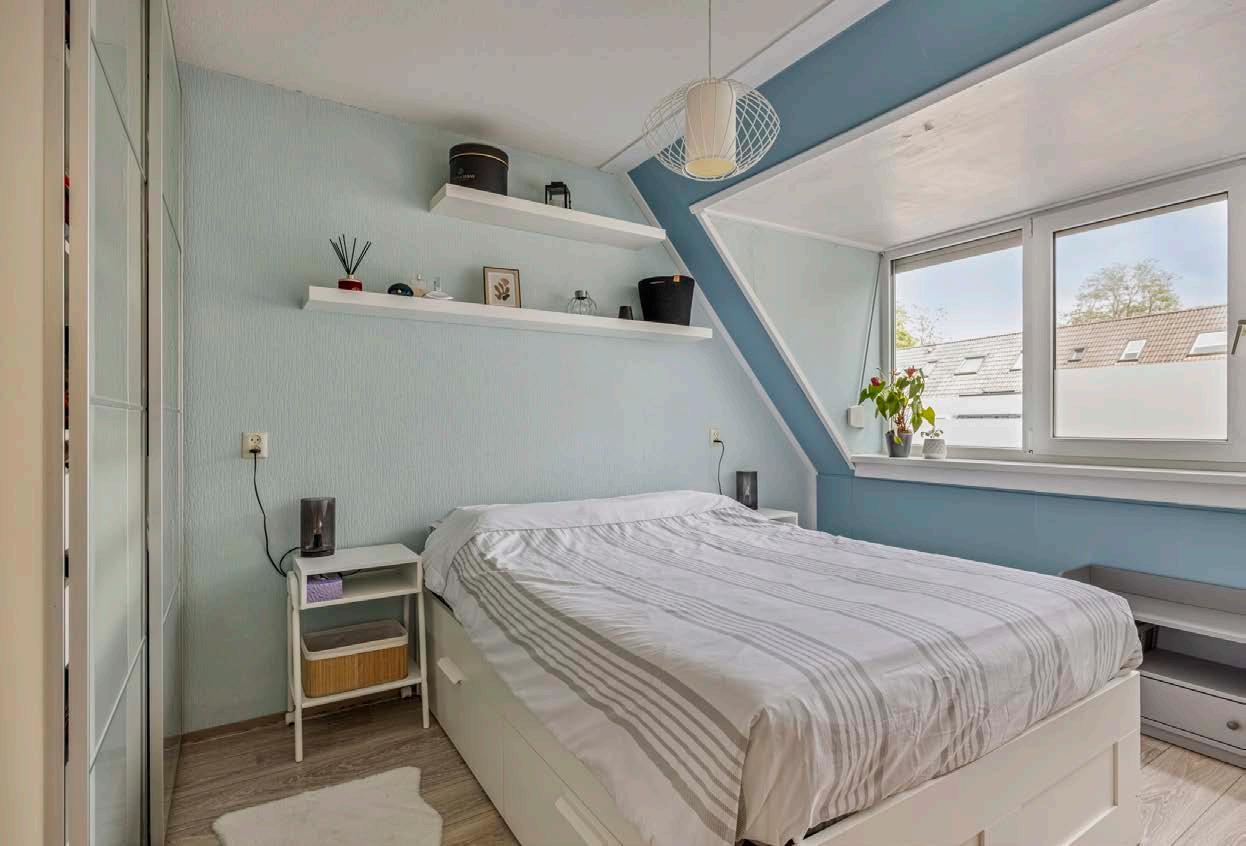 Op de eerste verdieping bevinden zich twee ruime slaapkamers, elk met voldoende ruimte voor een comfortabel bed, een kledingkast en een bureau. De derde slaapkamer is momenteel in gebruik als kastenkamer maar kan ook prima dienen als derde slaapkamer of als thuiskantoor. De zolderverdieping herbergt de derde/ vierde slaapkamer en is een ideale ruimte voor tieners die behoefte hebben aan een eigen plek of als extra logeerkamer.