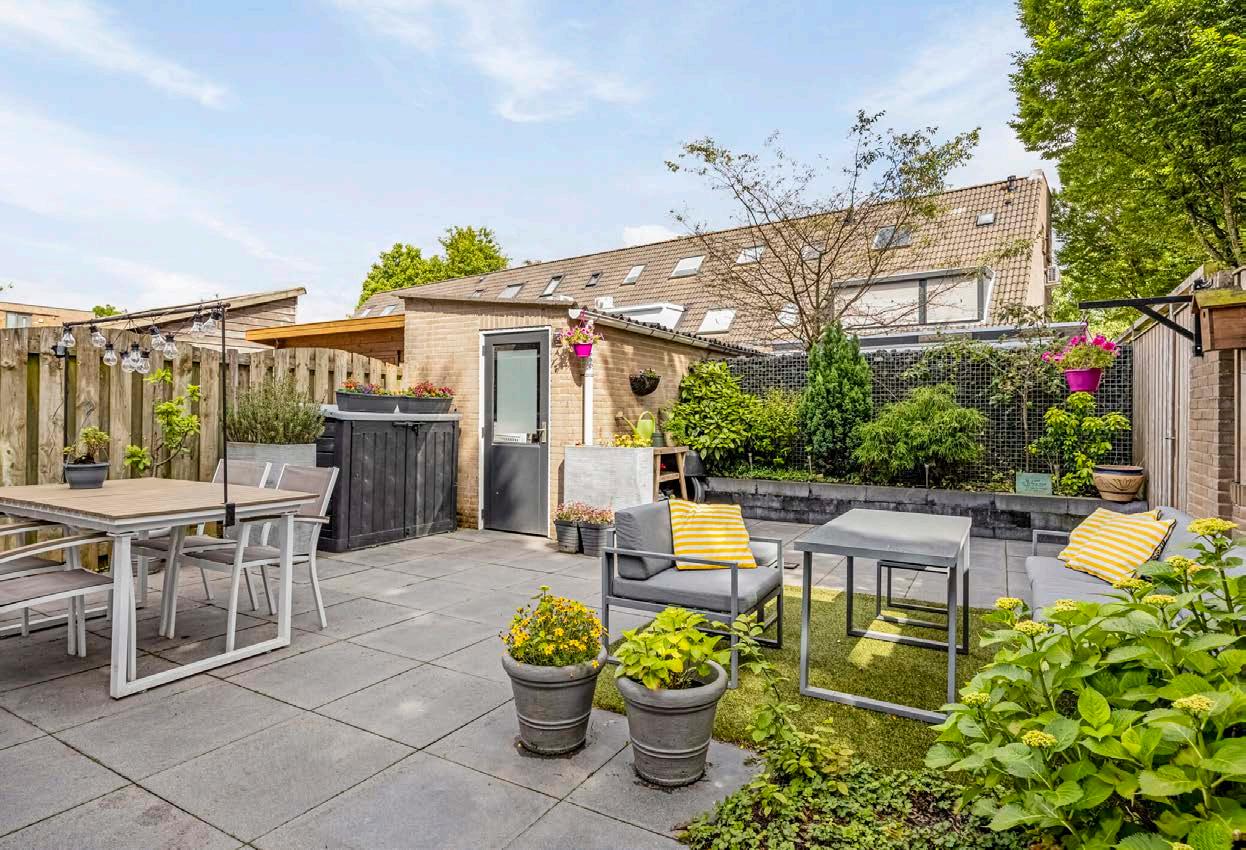 De achtertuin, gelegen op het zonnige zuidoosten, is een waar paradijs voor zonliefhebbers en tuinliefhebbers. Hier kun je de dag beginnen met de opkomende zon en genieten van lange zomerse avonden. De tuin biedt genoeg ruimte voor een speelplek voor de kinderen, een moestuin, of een gezellige zithoek waar je kunt barbecueën met vrienden. Daarnaast is er een praktische stenen berging aanwezig, perfect voor het opbergen van fietsen, tuingereedschap en andere benodigdheden.