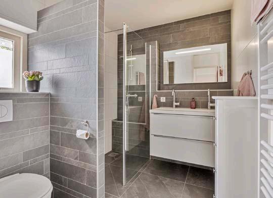 De badkamer is een oase van rust en ontspanning. Met een moderne inrichting, hoogwaardige materialen en een strakke afwerking biedt deze ruimte alles wat je nodig hebt voor je dagelijkse routine. Denk aan een ruime inloopdouche, toilet en een moderne wastafelmeubel met voldoende opbergruimte voor al je toiletartikelen. Hier begin je je dag fris en opgewekt, en kun je ‘s avonds heerlijk ontspannen na een lange dag.