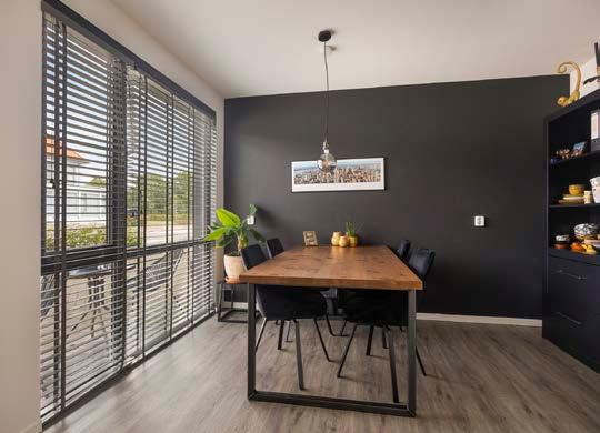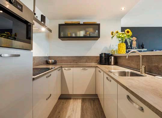 De nette keuken is van alle gemakken voorzien met een combi-oven, een inductiekookplaat, afzuigunit, vaatwasser en veel opbergruimte. Hier kun je heerlijke maaltijden bereiden. De eetkamer is ook te gebruiken als slaapkamer.