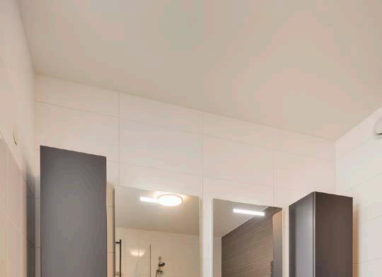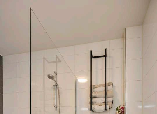 Ook de ruime badkamer voelt als enorme luxe, je kunt erin dansen.