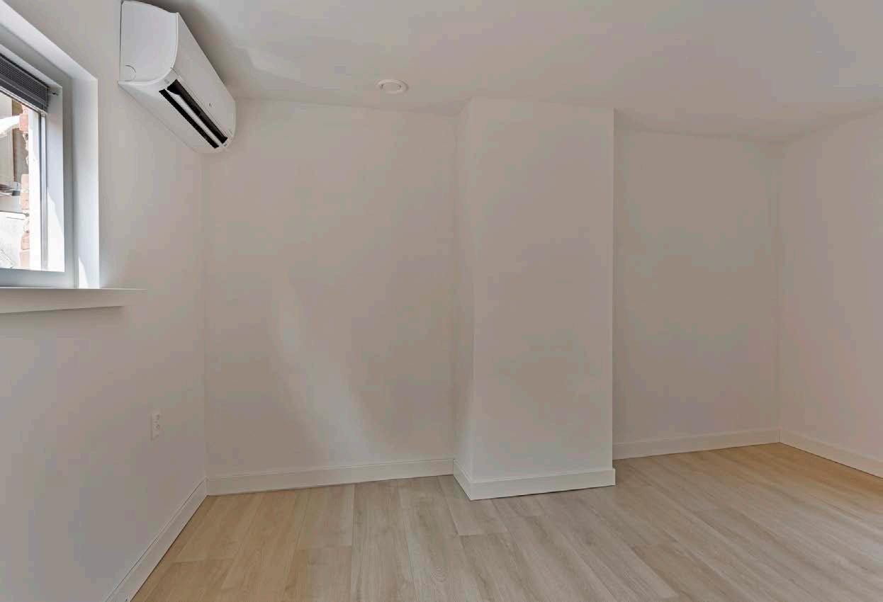 De gerenoveerde slaapkamer is voorzien van een houten vloer, wat zorgt voor een warme en natuurlijke uitstraling. Daarnaast is de kamer uitgerust met airconditioning, zodat je ook tijdens warme zomernachten kunt genieten van een comfortabele nachtrust. Een praktische en prettige ruimte waar je heerlijk tot rust kunt komen.