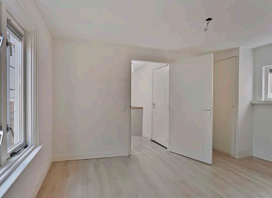 Deze gerenoveerde woonkamer biedt een rustige en uitnodigende sfeer. De houten vloer zorgt voor een warme uitstraling, terwijl de vele ramen zorgen voor een overvloed aan natuurlijk licht. Dit maakt de ruimte niet alleen helder en ruim, maar ook erg aangenaam om in te vertoeven. Een praktische en comfortabele plek voor dagelijks gebruik.