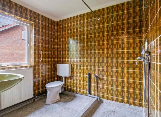 De granieten vloer, wastafel, toilet en ruime douche zorgen voor dagelijks comfort. De ruimte is praktisch in te delen en te moderniseren, zodat je hier de dag ontspannen kunt afsluiten.