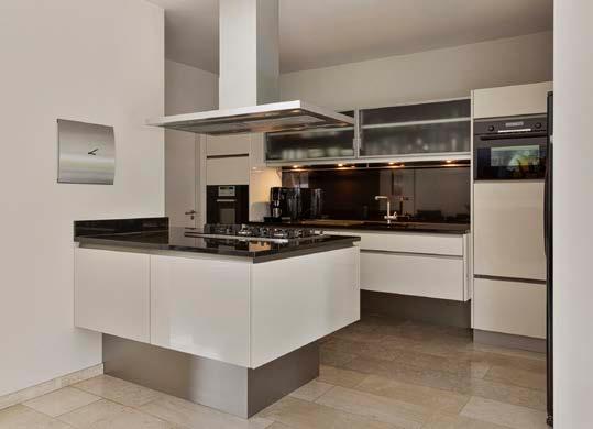 De woonkamer is het hart van dit huis, waar in hoogte verspringende plafonds een gevoel van ruimte en luchtigheid creëren. Grote ramen laten overvloedig daglicht binnenstromen, waardoor de kamer altijd helder en uitnodigend aanvoelt. Hier kun je heerlijk ontspannen met een boek, genieten van familiebijeenkomsten of vrienden ontvangen in een warme, lichte ambiance.