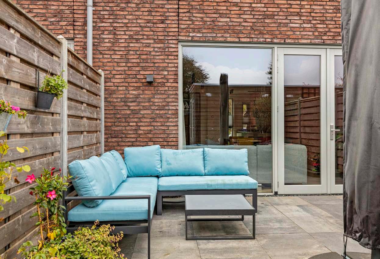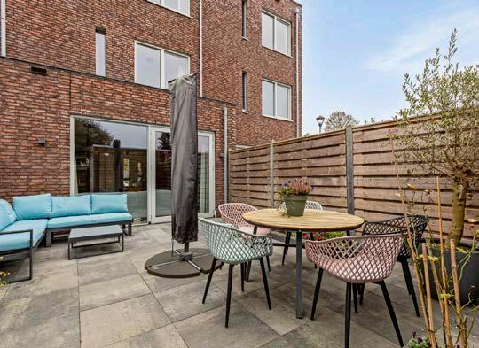 Ten slotte, de achtertuin. Deze is ruim, met een houten berging voorzien van elektra en een achterom. De tuin is smaakvol ingericht met grote, mooie tegels en diverse borders die zorgen voor een sfeervolle omgeving waar je heerlijk kunt ontspannen na een drukke dag in de stad.
