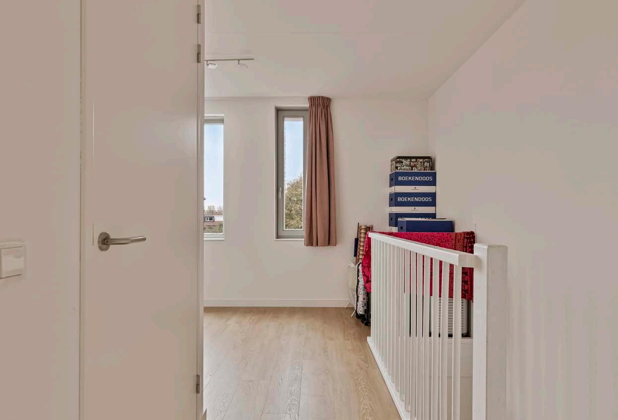 Verder vind je hier een royale inpandige bergruimte met wasmachineaansluiting en de opstelling voor de warmtepomp en WTW-installatie. Dit maakt de woning niet alleen stijlvol, maar ook uiterst efficiënt qua ruimtegebruik.