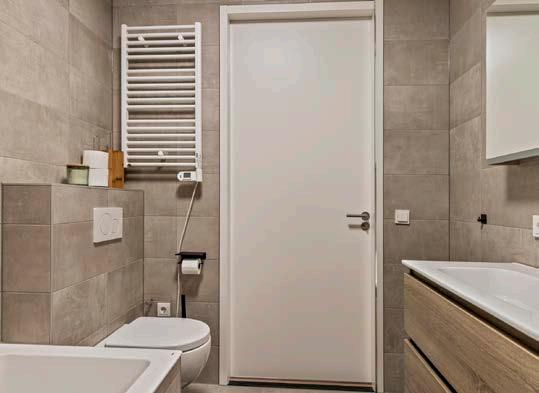 Op de eerste verdieping strekt de moderne lichte pvc-vloer met vloerverwarming en met hoge plinten zich uit over de ruime overloop en twee ruime slaapkamers, die door hun moderne maatvoering een ruimtelijk gevoel bieden. De hoofdslaapkamer aan de voorzijde is een perfecte plek om tot rust te komen.