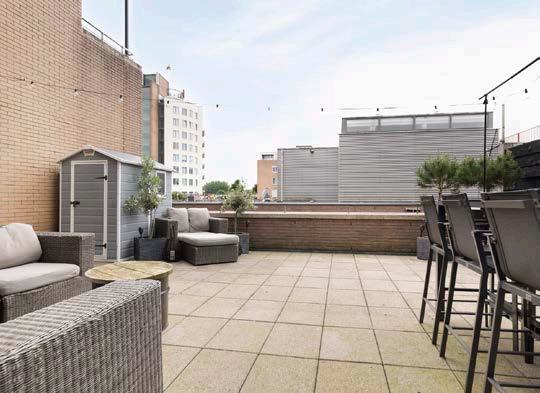 Het grote dakterras ligt op het zuid-westen. Dit is een ideale plek om van het buitenleven te genieten. Het dakterras biedt daarnaast genoeg ruimte voor een kleine loungehoek of eetgelegenheid.