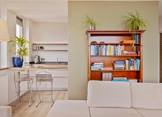 De luxe open keuken is volledig uitgerust met hoogwaardige apparatuur, ideaal voor degenen die van koken en gemak houden.