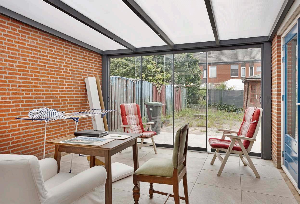 Geniet van de buitenlucht in de ruime tuin die op het noordoosten ligt. De serre biedt directe toegang tot deze prachtige buitenruimte, waar je kunt ontspannen, tuinieren of spelen met de kinderen. De ligging op het noordoosten zorgt voor een perfecte balans tussen zon en schaduw, ideaal voor elk moment van de dag.